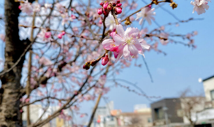 弘前市・上土手町の十月桜がほころび始め、春の訪れを告げています🌸 十月桜は、全体のつぼみの3分の1くらいが10月頃から咲き 残りの3...